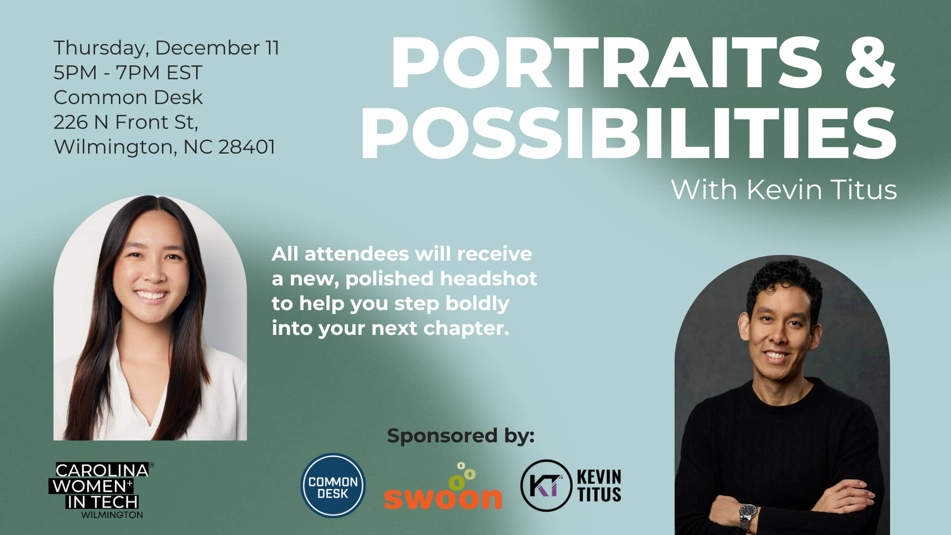 Professional photographer Kevin Titus will be offering polished headshots perfect for LinkedIn refreshes, speaking engagements, personal branding, or stepping boldly into your next professional chapter. Every attendee will receive one professionally retouched headshot.